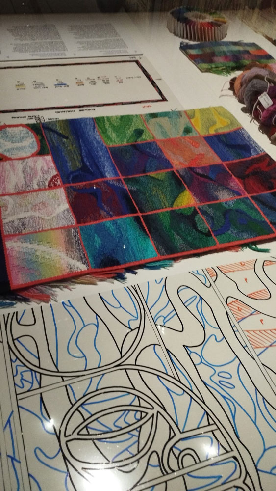 Puis on entre dans la salle principale ou les gouaches préparatives des tapisseries sont d'abord montrées. De l'autre côté de la salle, il y a les tapisseries réelles.