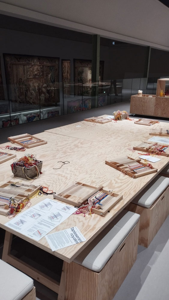 À l'étage de l'exposition, on retrouve une explication sur les couleurs (cf Michel-Eugène Chevreul) + des minis atelirs de tissages pour pratiquer soi-même (on s'y est évidemment essayé avec Camille)